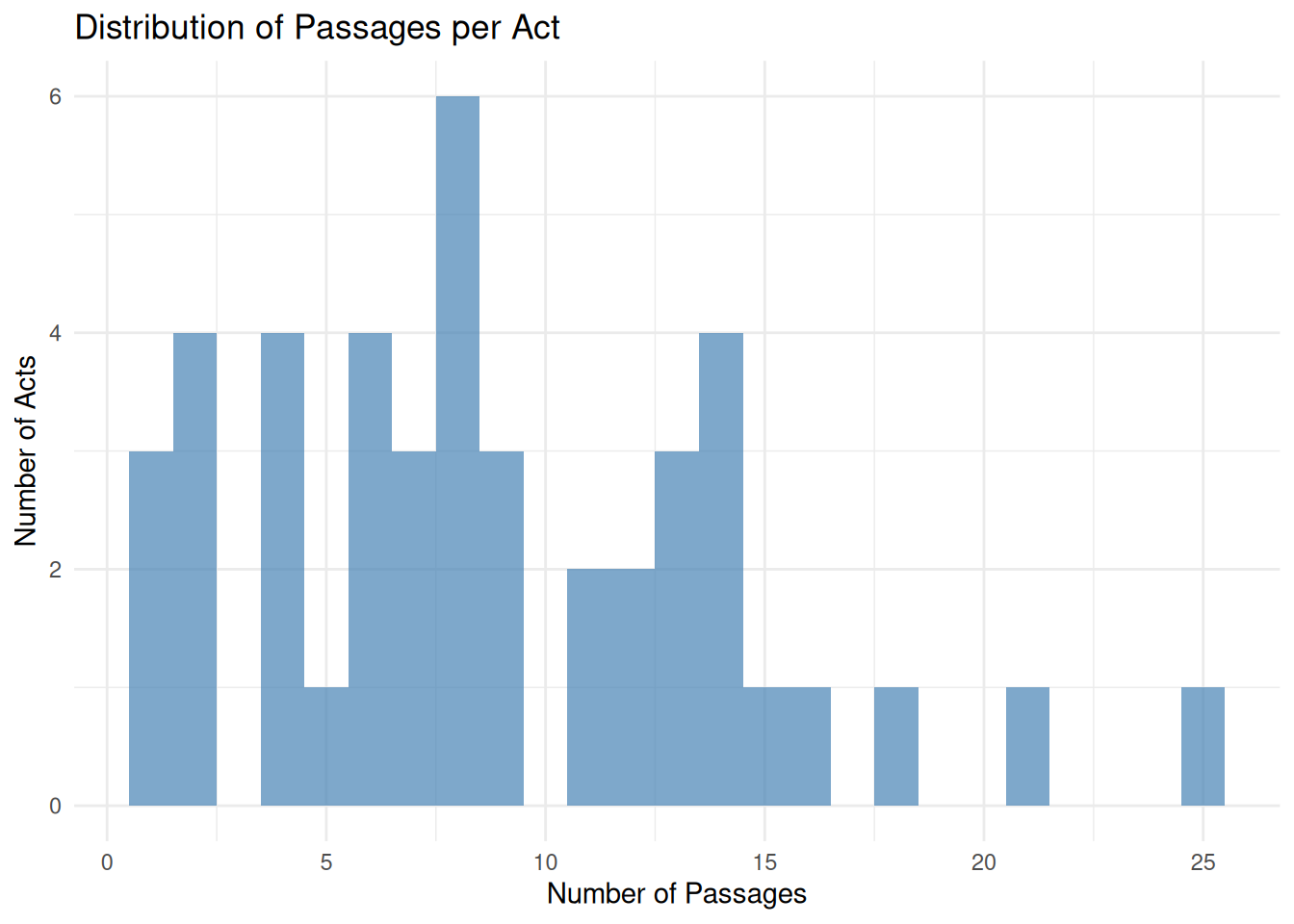 sprintf ("✗ Some acts have insufficient passages (min=%d)" , passage_stats$ min_passages)