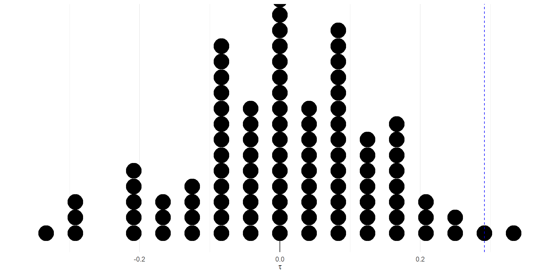 Para evaluar si el estimador observado durante el experimento, \(\tau =\) 0.292, podemos calcular el estimador de \(\tau\) para cientos de simulaciones diferentes.