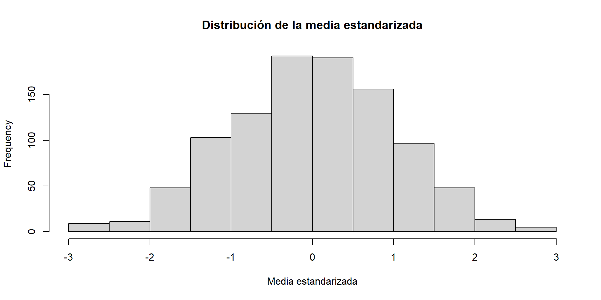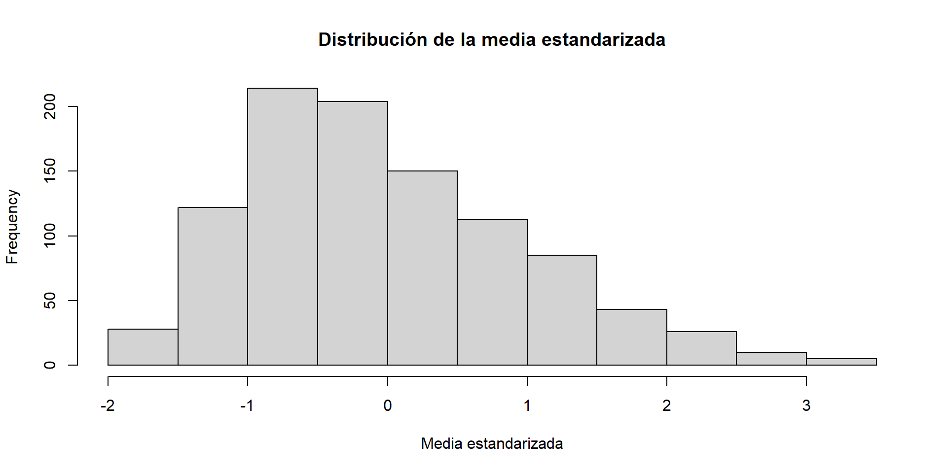 Es decir, sin importar la distribución poblacional de \(Y\), la distribución de la variable \(Z_n\) (que es una versión estandarizada de \(\bar Y_n\)) converge a una distribución normal estándar conforme el tamaño de la muestra aumenta.