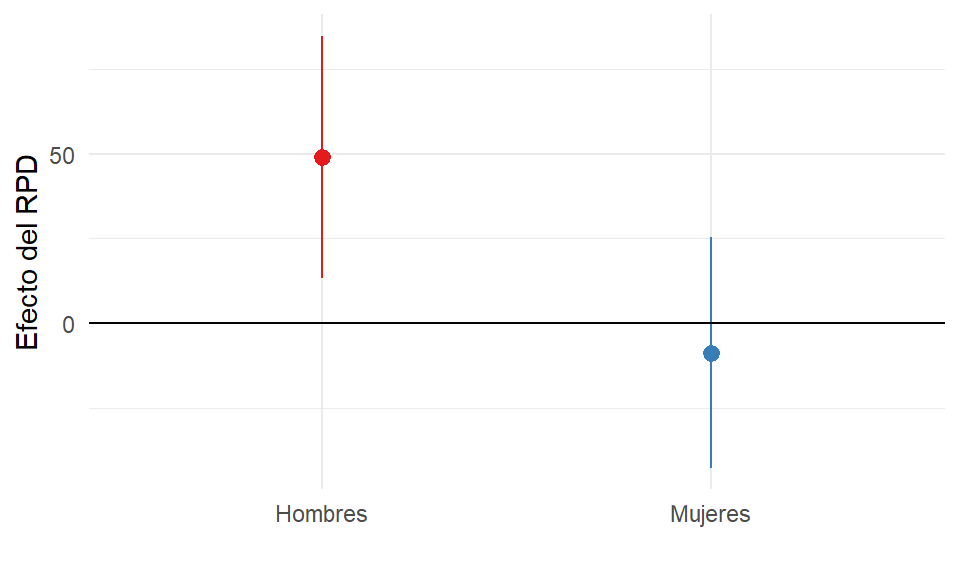 Figura 5: Efectos del RPD por género. Intervalos de confianza al 95%.